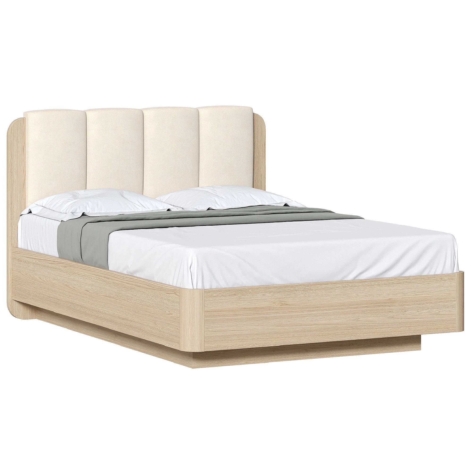 Светлый декор «Bowie» разной направленности придаёт конструкции тёплый оттенок, а плавные радиусные углы царг из МДФ смягчают геометрию и делают кровать безопасной.