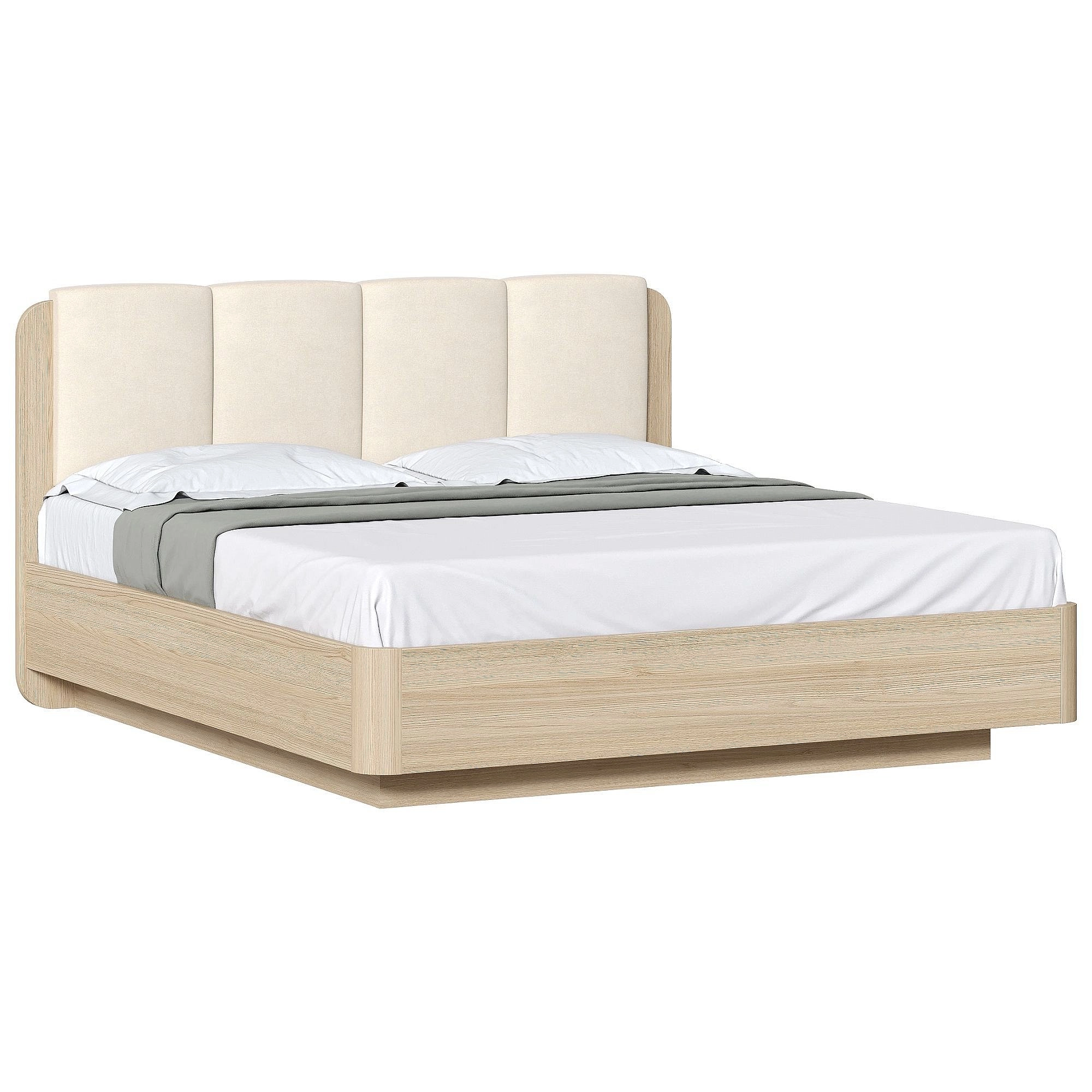 Светлый декор «Bowie» разной направленности придаёт конструкции тёплый оттенок, а плавные радиусные углы царг из МДФ смягчают геометрию и делают кровать безопасной.